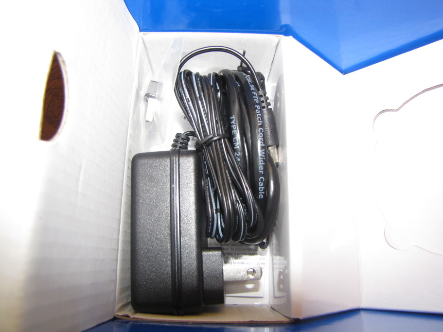 The little compartment under the pointing finger houses the power supply, an Ethernet Cable and a miniature USB Wifi adapter.