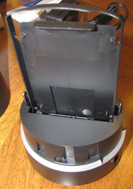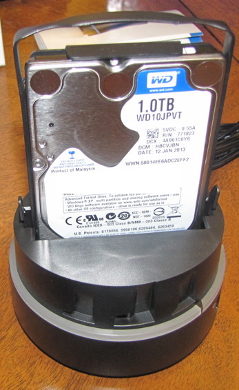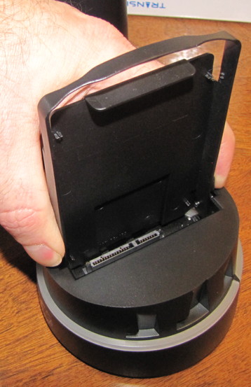 A slight twist of the top removes the cover to reveal the drive tray and the SATA connector.